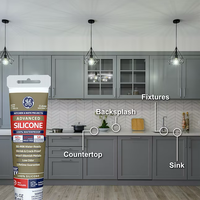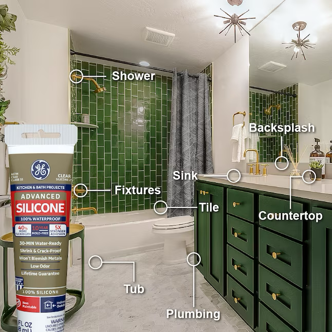 Excellent for sealing a wide range of kitchen and bath projects such as sinks, tubs, showers, fixtures, countertops, backsplashes and additional plumbing applications