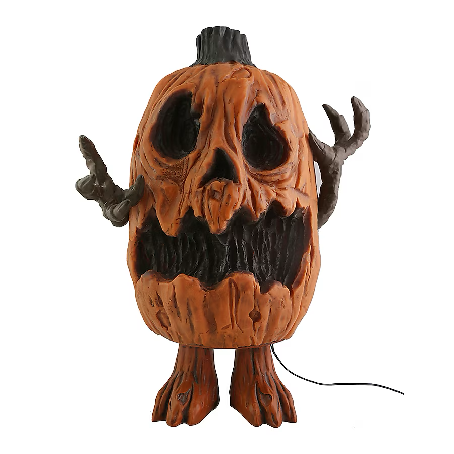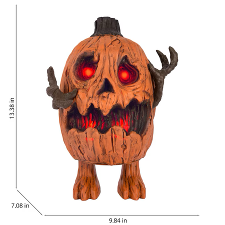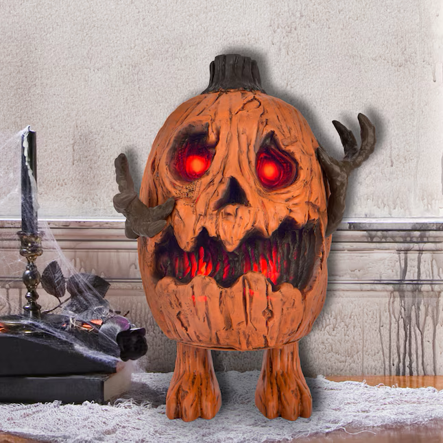 • ANIMATED HALLOWEEN DECOR: 13.4-in H x 9.8-in W x 7.1-in D indoor rotted talking pumpkin creature with realistic movement, LED light