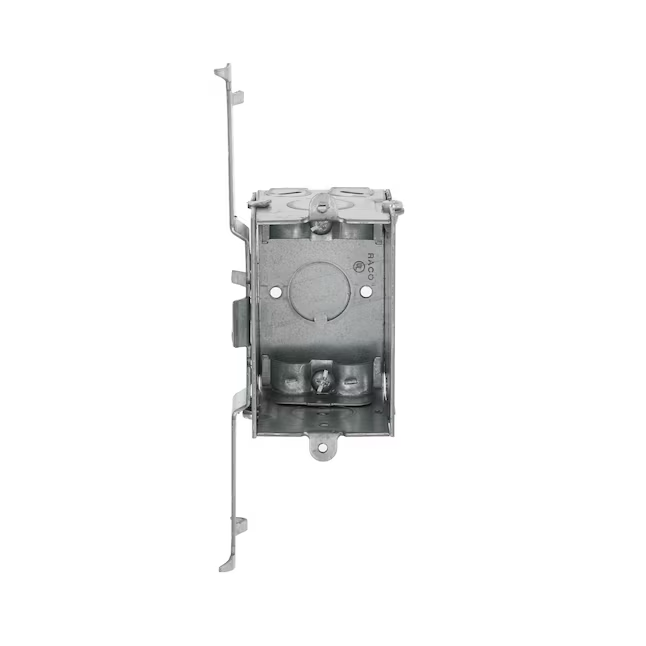 Bracket allows the box to mount on side of wood or metal stud