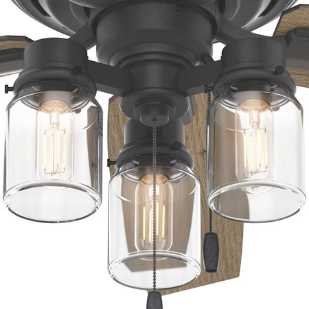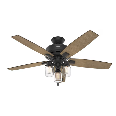 Hunter Lincoln 52-in Natural Iron Indoor Downrod or Flush Mount Ceiling Fan with Light (5-Blade)