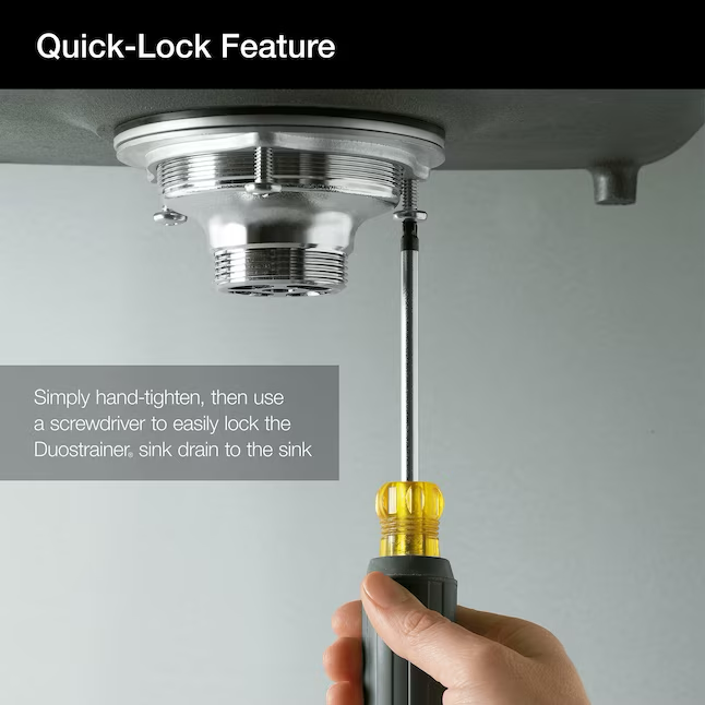 This Duostrainer sink strainer features a removable basket strainer with a tightly sealing open/close stopper. It is constructed of durable, solid brass for long-lasting performance.