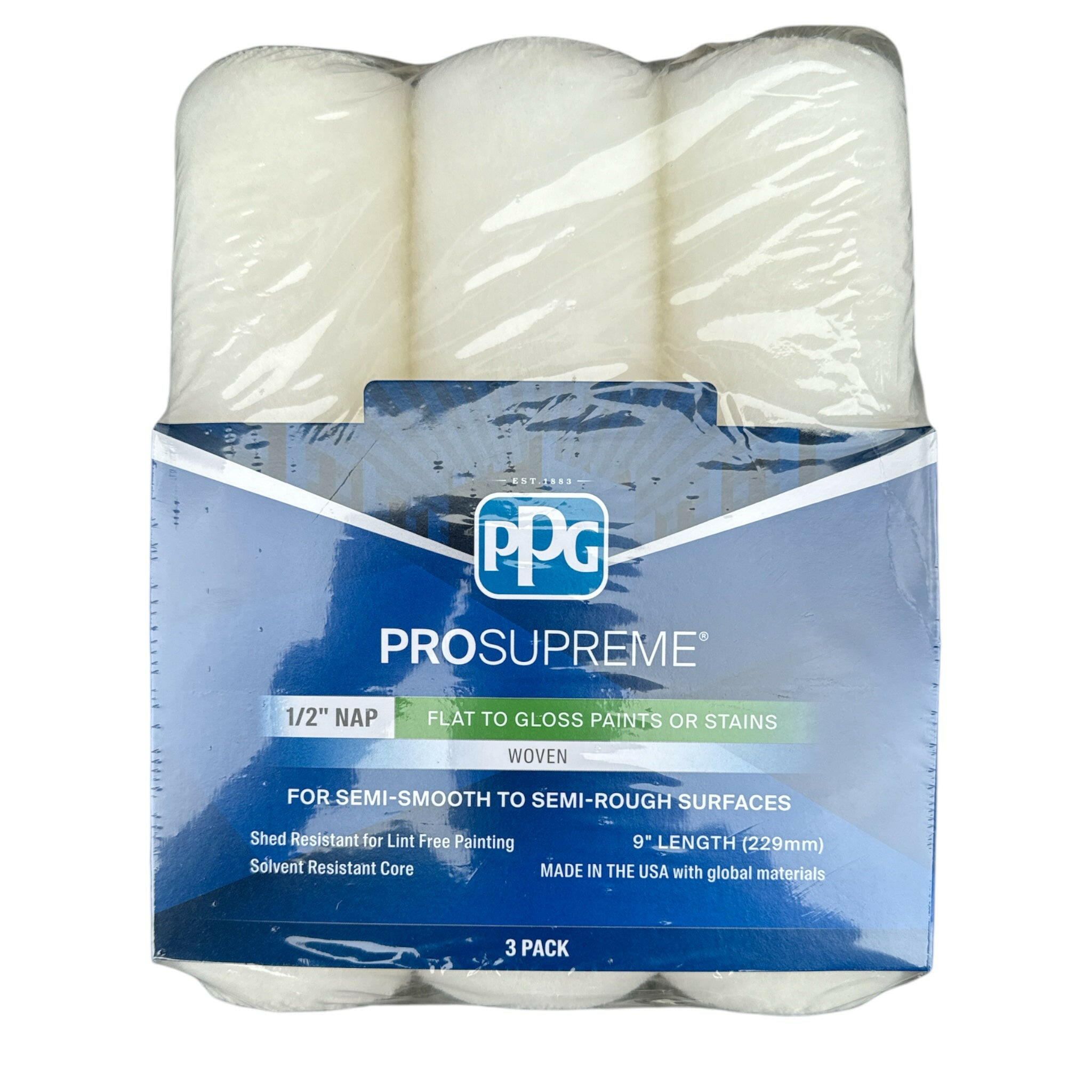 Upgrade your painting game with the PPG ProSupreme Woven Roller Cover. With a 1/2 inch NAP and 9 inch length, this 3-pack provides superior coverage and smooth application for a flawless finish. Perfect for professional painters or DIY enthusiasts seeking expert results.