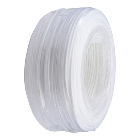 SharkBite PEX Pipe is a cross-linked polyethylene tubing designed for a wide range of residential and commercial plumbing applications. Manufactured without an oxygen barrier for potable water systems (available in white, blue, and red). The repeating SharkBite imprint pattern provides a visual aid to determine if the tube has been inserted all the way into the SharkBite Push-Fit Fitting. This feature only works if the tubing is cut between the SharkBite imprint pattern. Available in coils up to 1,000 ft. in length, allowing longer runs and fewer connections, reducing cost, time and potential leak points.