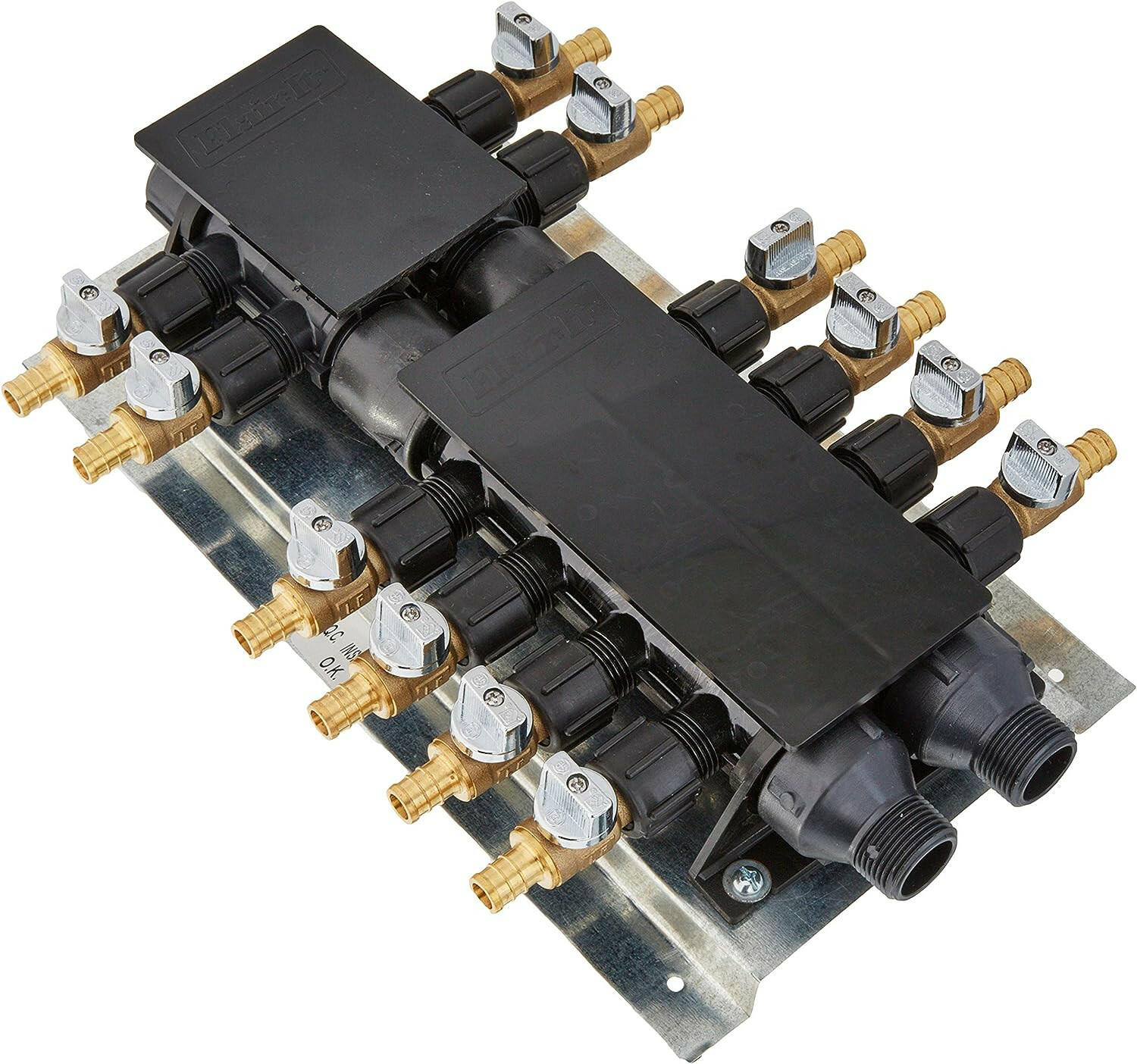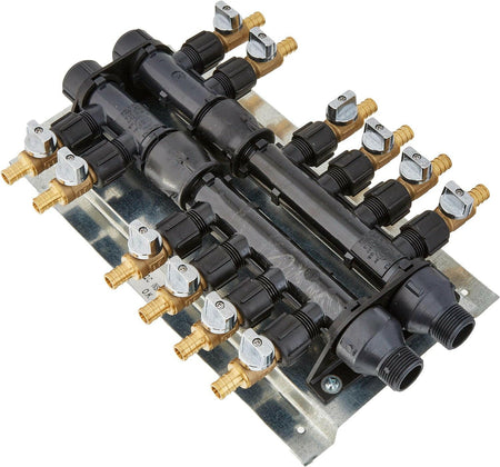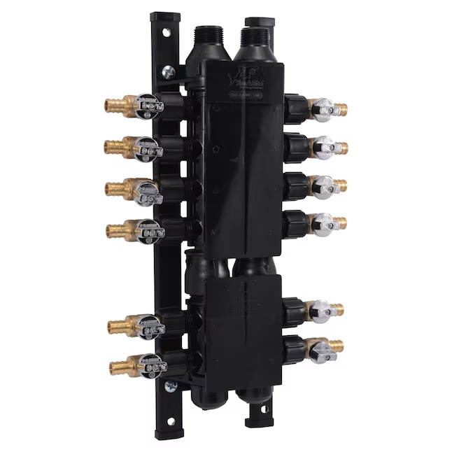 - Features Inlet 1 Ball Valves No Maximum PSI (PSI) 100 Inlet 1 Fitting Orientation Female Maximum Temperature (Fahrenheit) 180 Inlet 1 Fitting Thread Type FPT Number of Loops N/A Inlet 1 Fitting Type Threading Number of Outlets 12 Inlet 2 Ball Valves No Outlet Ball Valves Yes Inlet 2 Fitting Orientation Female Outlet Material Brass Inlet 2 Fitting Thread Type FPT Outlet Orientation N/A Inlet 2 Fitting Type Threading Outlet Thread Type N/A Material Plastic Outlet Type Crimp