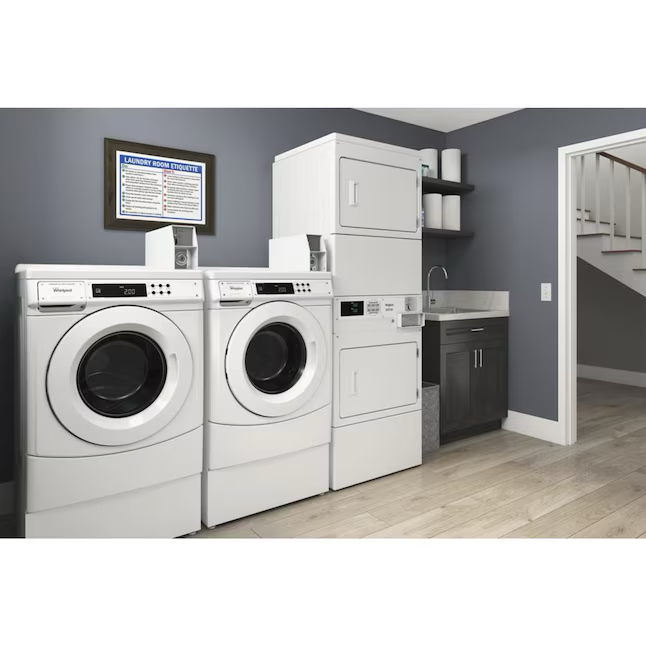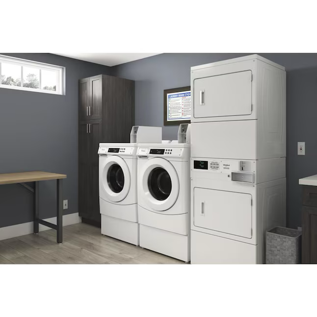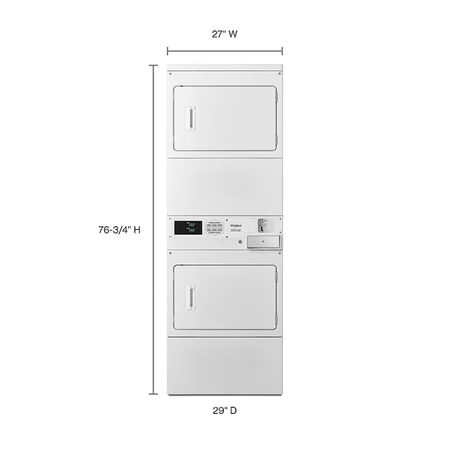 Get the capacity of two dryers in the space of one with the Whirlpool® Commercial Laundry Stack Dryer. With 7.4 cu. ft. capacity in each drum, this unit can handle more loads and give laundry facilities the durability and performance needed to withstand the heavy traffic of commercial laundry. The Whirlpool® Commercial Laundry stack dryer is coin-drop equipped, and backed by a 90-day labor/2-year limited parts warranty.