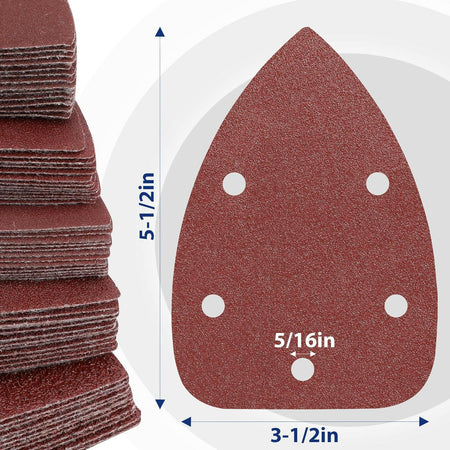 The size of mouse sanding pads is 5-1/2 * 3-1/2in, pre-punched with 5 holes. Furthermore, the adopted 5-hole design is used for effective dust extraction, generating positive impact on reaching a top-notch polishing effect.