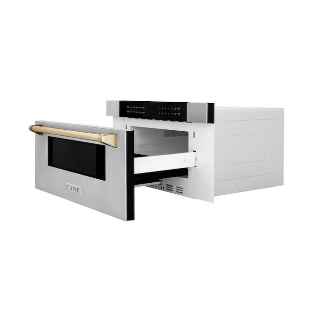 ZLINE 29.75-in 1.2-cu ft Electronic 1000-Watt Microwave Drawer (Stainless Steel with Polished Gold Handle)