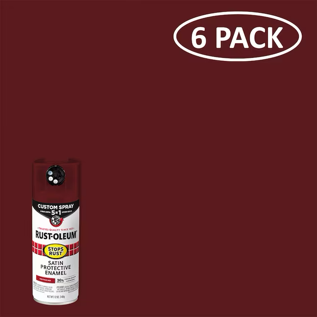 Rust-Oleum Item # 4122803 | Model # 376880/6Rust-Oleum Stops Rust Custom Spray 5 en 1, paquete de 6 pinturas en aerosol rojo satinado Heritage (PESO NETO 12 oz)