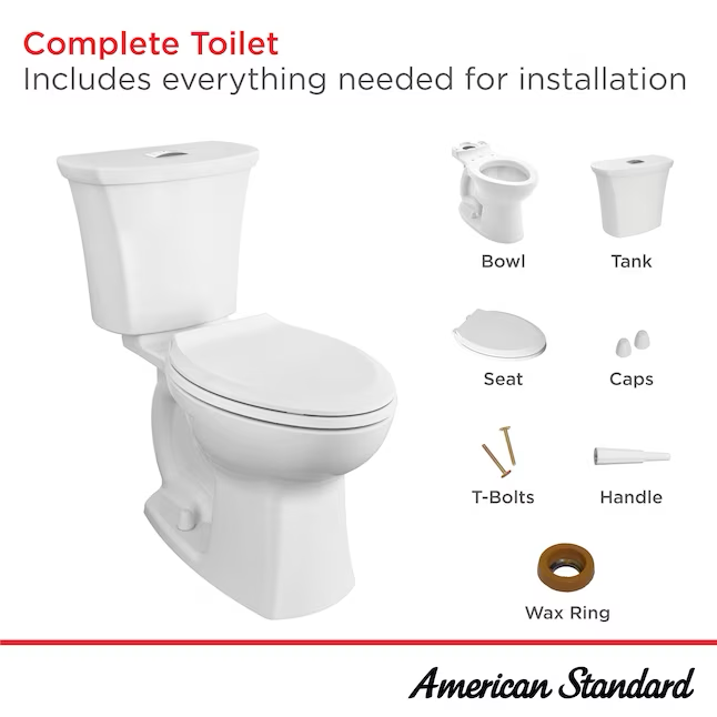 American Standard Item # 41223133 | Model # 2793.128NTS.020American Standard Champion 4 Inodoro alargado blanco con altura de silla, 2 piezas, WaterSense, cierre suave, 12 pulgadas, empotrable, 1,28 GPF