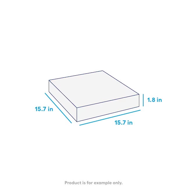 - Dimensions Altura real (pulgadas) 1.8 Longitud común (pulgadas) 16.0 Longitud real (pulgadas) 15.7 Tamaño común (largo x ancho) 16 x 16 pulgadas Ancho real (pulgadas) 15.7 Ancho común (pulgadas) 16.0 Altura común (pulgadas) 2.0