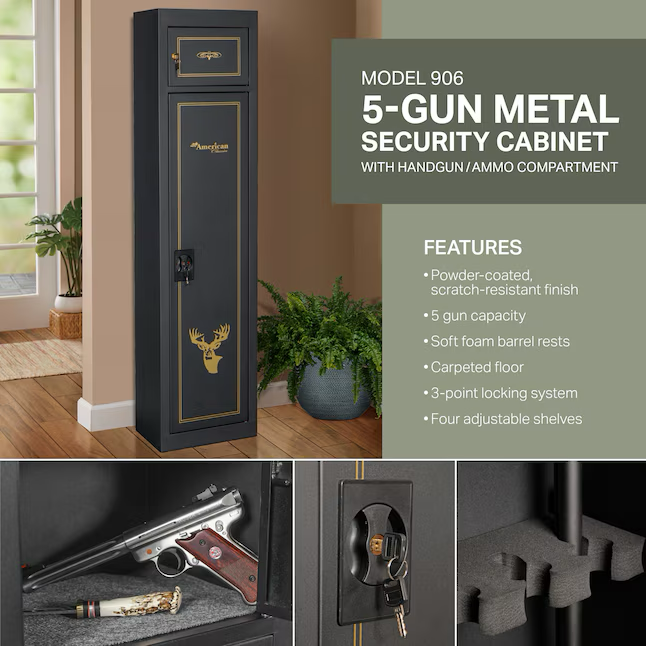 Colección de seguridad para armas American Furniture Classics Gabinete para armas con llave para 5 armas