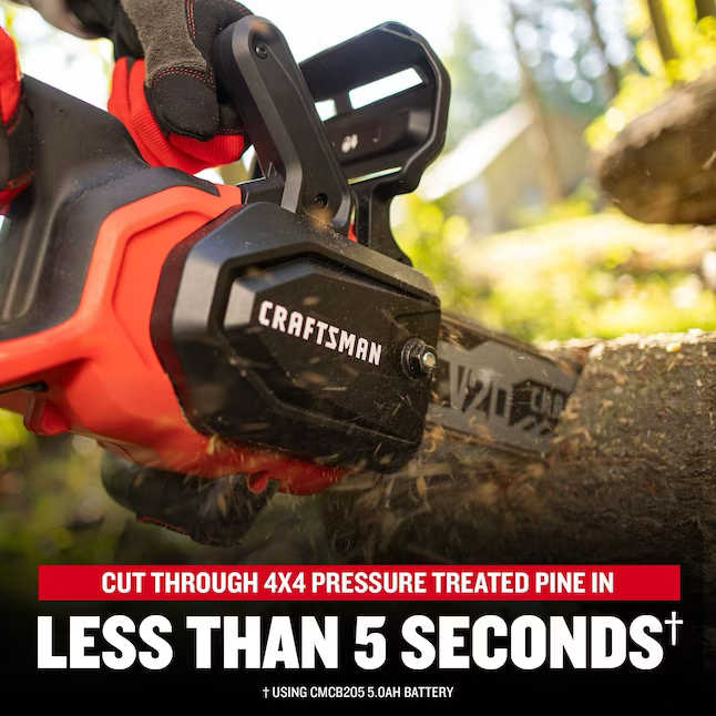 Motosierra CRAFTSMAN de 20 voltios máx., 12 pulgadas, batería sin escobillas, 5 Ah (batería y cargador incluidos)