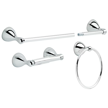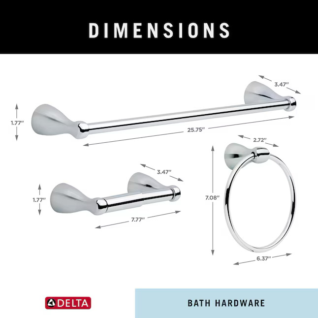 Juego de herrajes decorativos para baño de cromo pulido de 3 piezas de Delta Foundations con barra para toallas, soporte para papel higiénico y aro para toallas