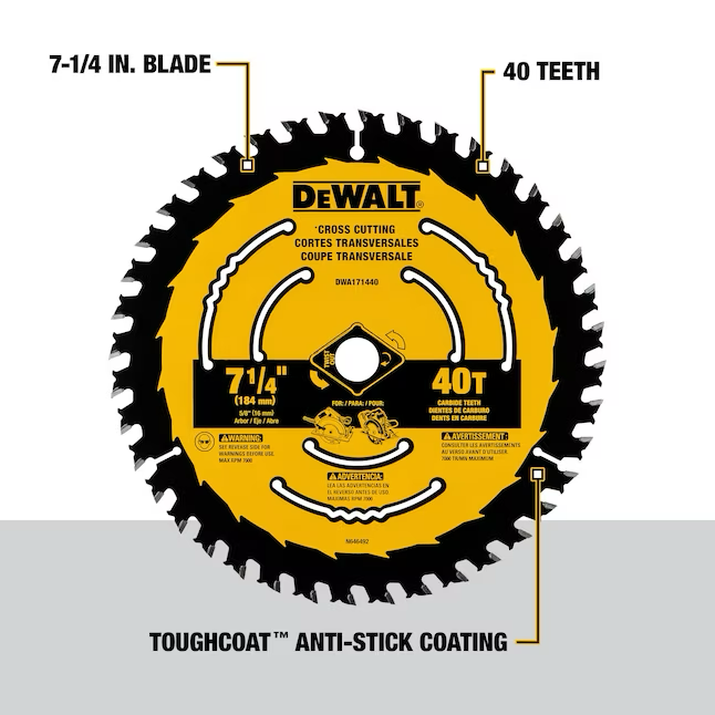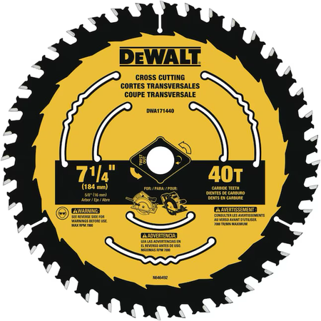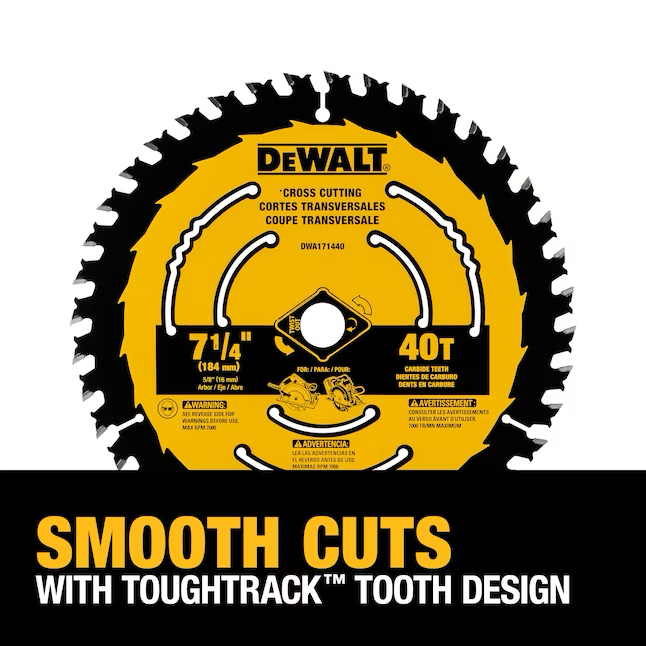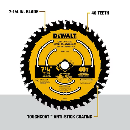 DEWALT Hoja de sierra circular de acero con punta de carburo de tungsteno y acabado fino de 40 dientes, 7-1/4 pulgadas
