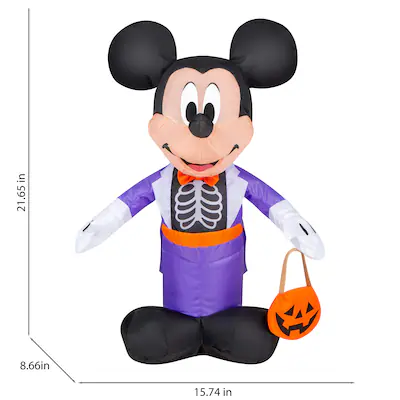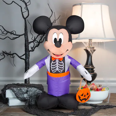 INFLABLE DE MESA PARA HALLOWEEN: Mickey Mouse inflable Airdorable™ Airblown® para interiores con traje de esqueleto para decorar la mesa de Halloween