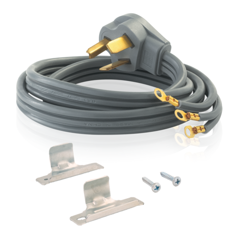 El cable para secadora eléctrica Eastman® conecta secadoras eléctricas a una fuente de alimentación de 3 conductores. La configuración de clavijas del cable es compatible con la mayoría de las principales marcas de secadoras eléctricas. El cable viene con terminales de anillo incorporados para una instalación más sencilla y una abrazadera de alivio de tensión incluida. El enchufe está diseñado con un ángulo para mantener el cable cerca de la pared evitando que se doble y prevenga daños. El cable del medio es el neutro y ambos cables exteriores son los calientes. Listado por UL.