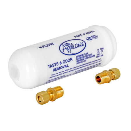 El filtro de agua en línea EZ-FLO® está diseñado para conectarse a su máquina de hielo y/o refrigerador. Los 2 extremos del filtro tienen una conexión de compresión de 1/4 de pulgada que se instala fácilmente en la línea de suministro de agua que va desde una válvula de agua hasta su electrodoméstico. Este filtro de agua está diseñado para mejorar el sabor general del agua y eliminar los olores. Tiene una mayor capacidad que los filtros de agua tradicionales que se instalan en el frigorífico o en la máquina de hielo.