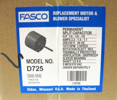 Fasco D725 ventilador y motor de soplador 1075 RPM 3 velocidades 208/230 voltios 48 marco