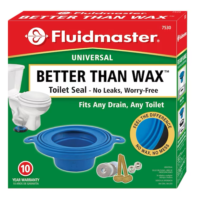 Fluidmasters Better Than Wax Seal ofrece una solución sencilla, sin ensuciar y sin fugas al reemplazar el sello del inodoro. El sello para inodoro sin cera Fluidmaster 7530 Better Than Wax es una solución innovadora a un viejo problema del inodoro: los sellos de cera. Diseñado para ser una pieza de reparación de inodoro verdaderamente universal que se adapta a cualquier inodoro, desagüe o brida. El diseño único elimina la preocupación de colocar el inodoro en la posición incorrecta, simplemente levántelo y reposicionelo. Los sellos de repuesto para inodoro Better Than Wax funcionan sobre el suelo, incluso con el suelo, debajo del suelo o en superficies irregulares para una instalación sin preocupaciones. Una solución superior que elimina la cera sucia y reduce el tiempo de reparación. Construido para durar, este diseño de sello de caucho duradero para inodoro también ofrece pernos y herrajes de latón que no se oxidan, junto con una garantía de 10 años. Elimine la molestia de reemplazar el sello de cera de su inodoro con Fluidmaster Better Than Wax.