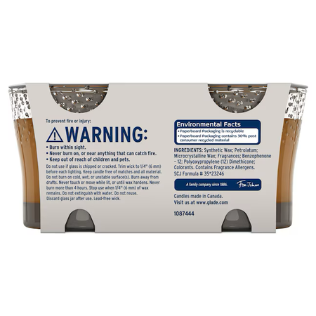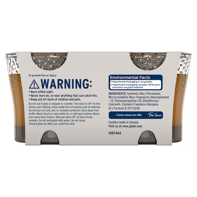Glade Vela en tarro marrón de madera de cachemira, paquete de 2, 1 mecha