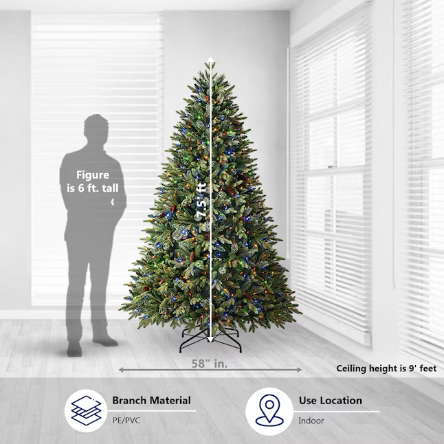Holiday Living Árbol de Navidad artificial preiluminado de pino Hayden de 7,5 pies con luces LED