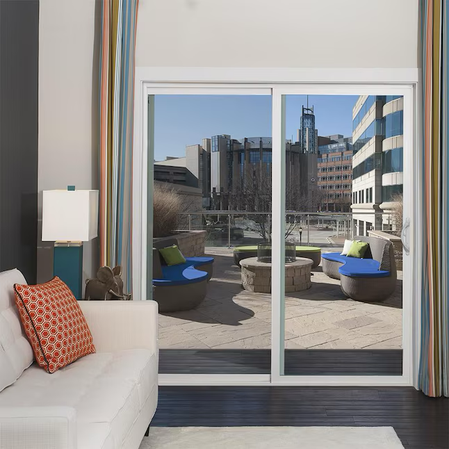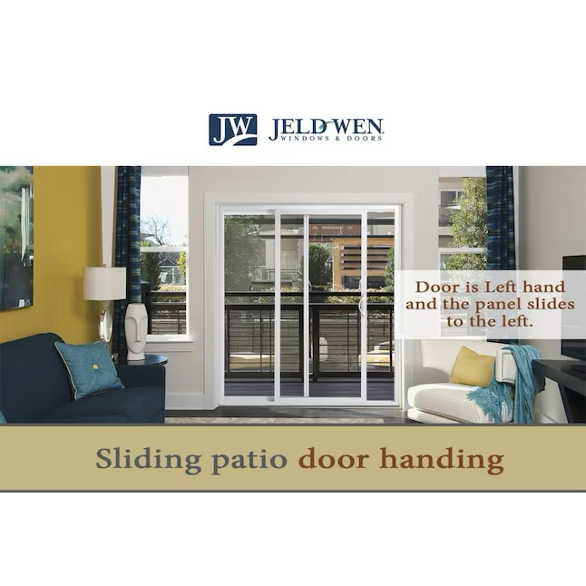 JELD-WEN Puerta doble corrediza para patio de vinilo blanco de argón de baja emisividad de 72 x 80 pulgadas, corrediza hacia la izquierda