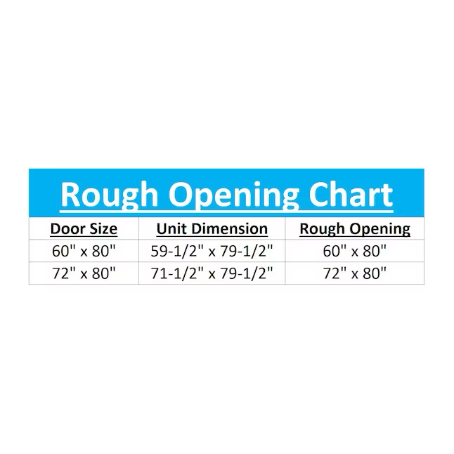 • Dimensions Profundidad real (pulgadas) 4.563 Profundidad de la jamba 4.563 Altura real (pulgadas) 79,5 Medición de profundidad de jamba 4-9/16 pulgadas Ancho real (pulgadas) 71,5 Altura de apertura aproximada (pulgadas) 80.0 Ancho real con luces laterales (pulgadas) 71,5 Ancho de apertura rugosa (pulgadas) 72.0 Tamaño común (ancho x alto) 72 x 80 pulgadas Peso libras.) 200 Ancho común (pulgadas) 72.0