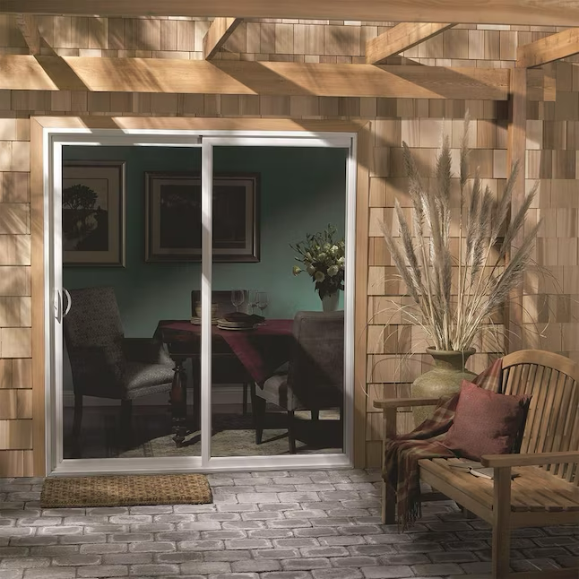 • El interior y el exterior de la unidad de puerta para patio son blancos con manijas a juego.