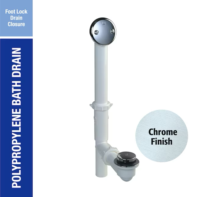 Keeney Drenaje con bloqueo de pie de cromo pulido de 1,5 pulgadas, blanco/cromo pulido, con tubo de plástico