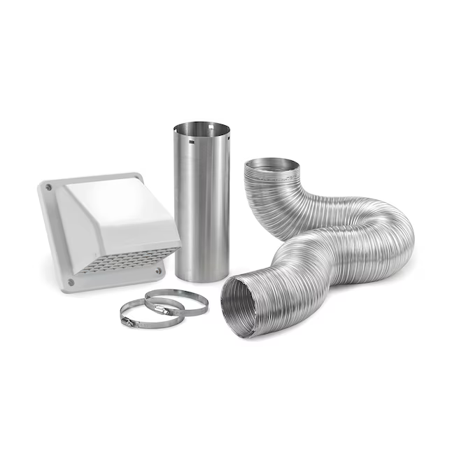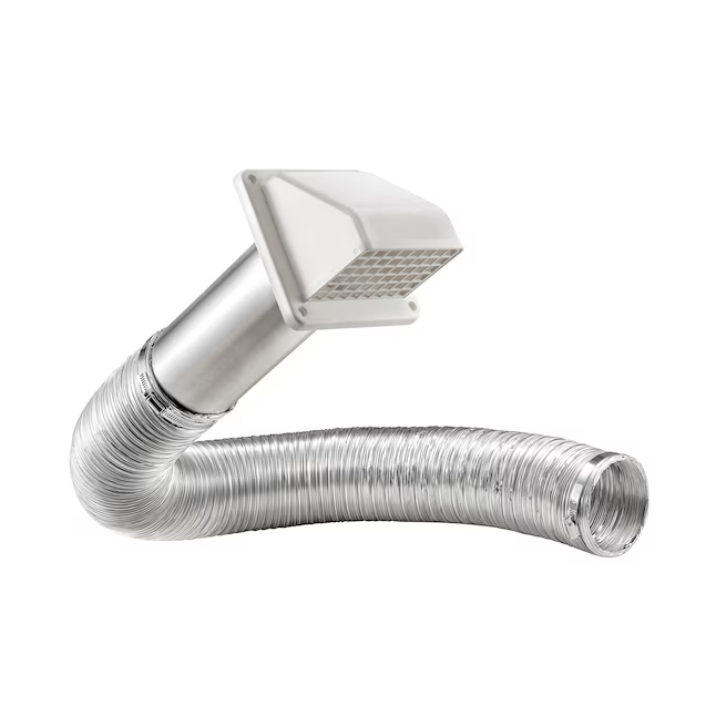 El kit de ventilación de escape de secadora de ropa con cubierta de plástico blanco que cuenta con un conducto semirrígido de 4 pulgadas x 8 pies UL 2158A es ideal para ventilar a través de la pared. Este kit se utiliza para el escape de la secadora de ropa y otras aplicaciones de ventilación generales que requieren que el aire húmedo y la humedad salgan de la casa. La cubierta permite un flujo de aire máximo al tiempo que reduce el reflujo del aire de escape. El regulador incorporado evita las corrientes de aire inverso mientras que la protección extraíble evita que los bichos entren a la casa a través del respiradero.