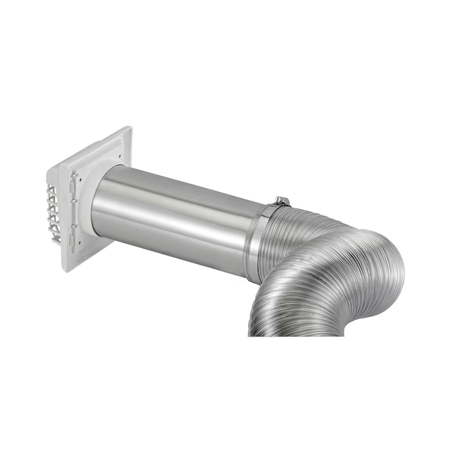 El kit de ventilación para secadora Rigiflex es flexible pero rígido. Este conducto está patentado y es recomendado por los fabricantes de secadoras de ropa eléctricas y a gas. El conducto Rigiflex es adecuado para todas las instalaciones de secadoras de ropa eléctricas y a gas y cuenta con certificación UL. El conducto Rigiflex no requiere codos, ya que puede formar curvas cerradas de 90 grados. El kit incluye todos los componentes para ventilar adecuadamente su secadora de ropa.