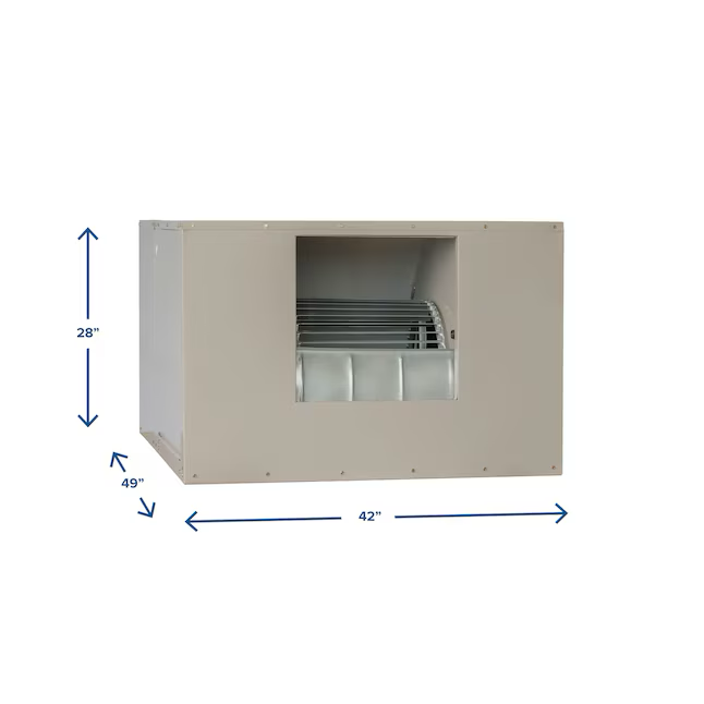 - Specifications Dirección del flujo de aire borrador lateral Material Acero Volumen de aire (CFM) 5000 Motor incluido No Filtro de agua incorporado No Tipo de almohadilla Celulosa Residencial comercial Residencial Almohadilla(s) incluida(s) Sí Directo indirecto Directo Control remoto incluido No Velocidades del ventilador 0 Clasificación de sonido (decibeles) 72 Bajo techo, en exteriores Exterior
