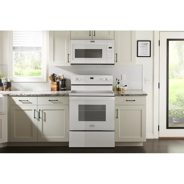 Microondas sobre la cocina Maytag de 1,7 pies cúbicos y 1000 vatios (blanco)