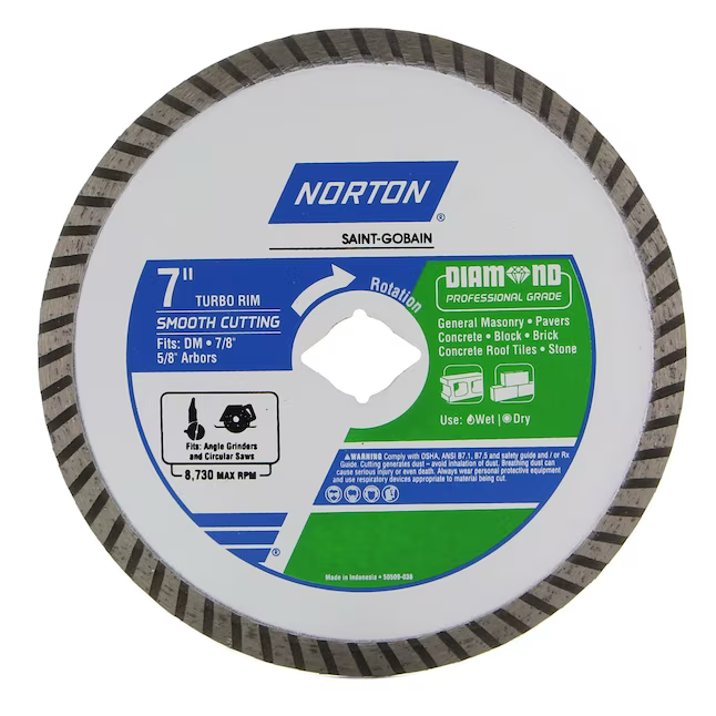 Hoja de sierra de diamante Norton con borde turbo húmedo/seco de 7 pulgadas