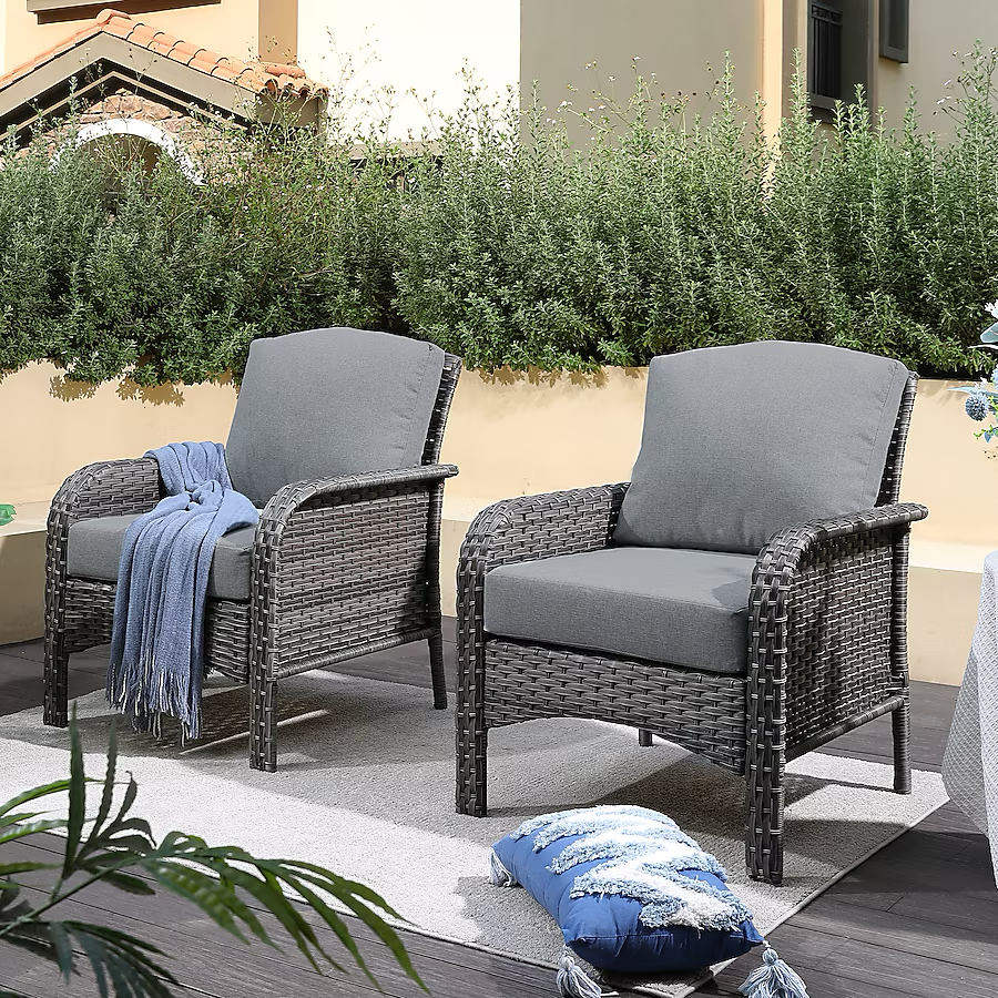 Mimbre y cojín: el mimbre tejido a mano hace que todo el conjunto sea mucho más resistente y el cojín de alta densidad le brinda un fuerte soporte lumbar para una mayor comodidad.