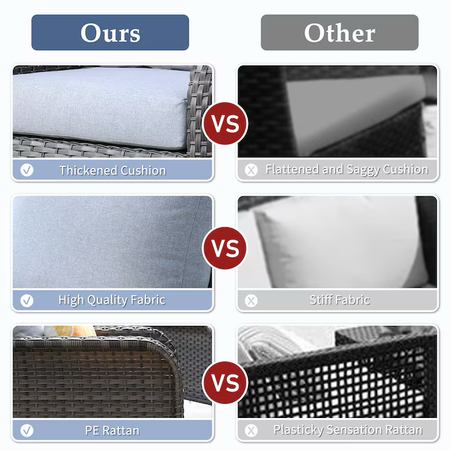 Mimbre y cojín: el mimbre tejido a mano hace que todo el conjunto sea mucho más resistente y el cojín de alta densidad le brinda un fuerte soporte lumbar para una mayor comodidad.