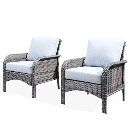 Juego de 2 sillas de conversación fijas Ovios con estructura de metal negro de mimbre y asiento acolchado gris claro