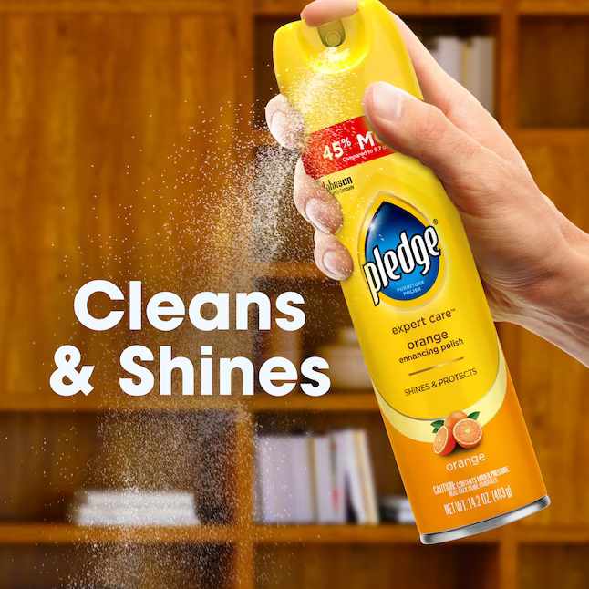 • Pledge Expert Care Lemon Enhancing Aerosol es un limpiador y abrillantador de muebles que brilla y protege superficies de madera y más.