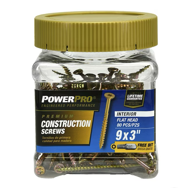Tornillos para madera interior de zinc amarillo Power Pro #9 x 3 pulgadas (80 por caja)