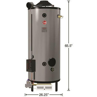 - Specifications Clasificación BTU 125000 Certificaciones y listados Listado por CSA, clasificado por UL Acabado Familia Gris Tipo de combustible Gas Interior/Exterior Interior Capacidad nominal del tanque (galones) 75 Tamaño del paquete 1 Profundidad del producto (pulg.) 26,25 Altura del producto (pulg.) 65,5 Peso del producto (libras) 600 Ancho del producto (pulg.) 26,25 Tipo de ventilación atmosférico Calentador de Agua Tipo Gas Gas Natural