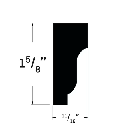 Cada pieza mide 11/16 pulgadas de espesor x 1-5/8 pulgadas de ancho x 8 pies de largo