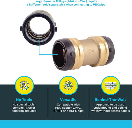 SharkBite Acoplamiento de empuje de latón de 1-1/2 pulg. x 1-1/2 pulg.