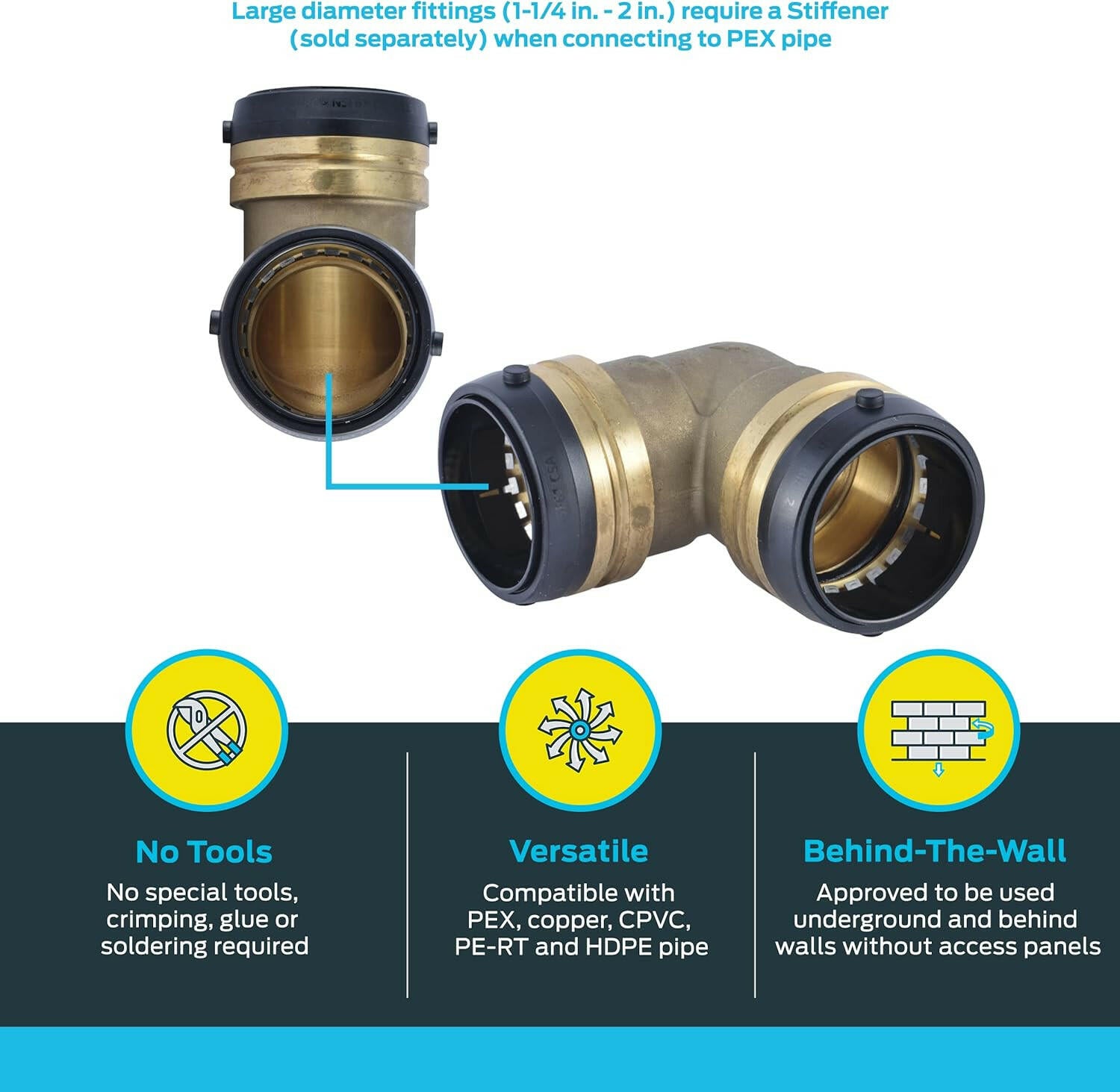 El innovador diseño de conexión por presión permite una instalación rápida y sencilla al conectar dos piezas de tubería de agua potable. Ideal para trabajar en espacios reducidos. El tiempo de instalación más rápido y la facilidad de uso reducen los errores de instalación.