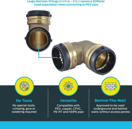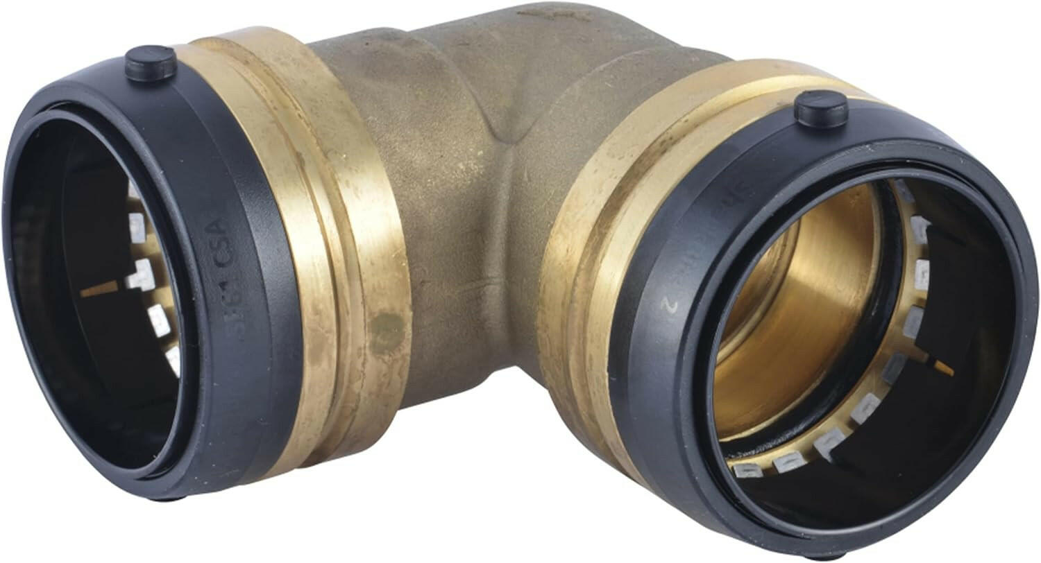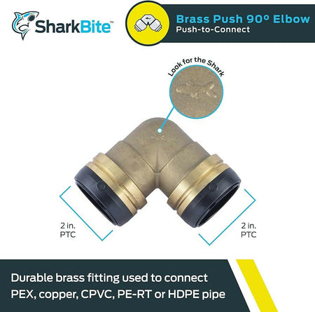 SharkBite Codo de 90 grados de empuje de latón de 2 pulg. x 2 pulg.