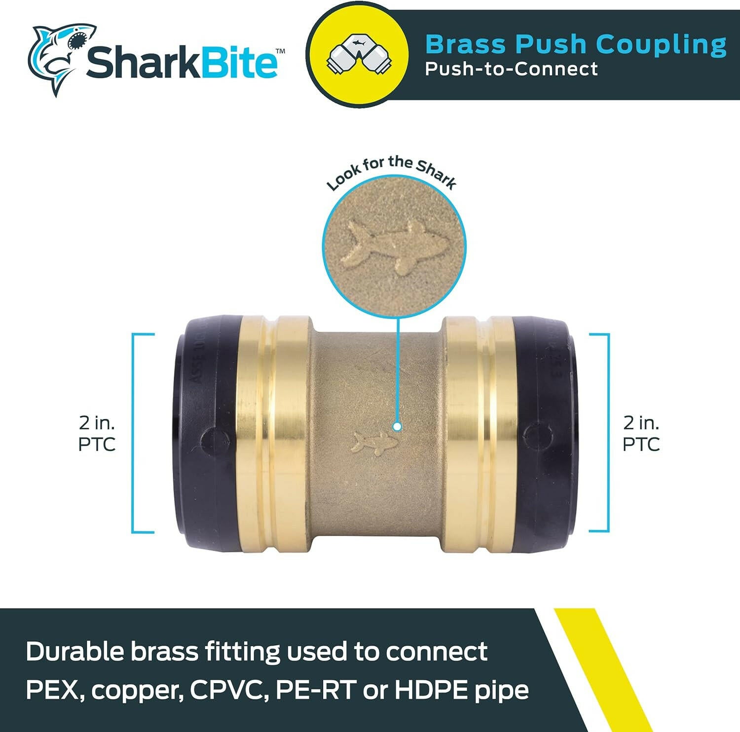 SharkBite Acoplamiento de empuje de latón de 2 pulg. x 2 pulg.