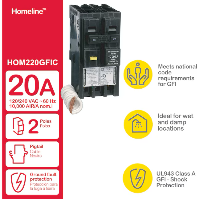 Disyuntor Gfci de 2 polos y 20 amperios Square D Homeline