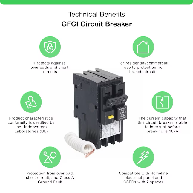 - Specifications Voltaje del disyuntor 240 Fase Monofásico (120/240) Protección de falla a tierra Sin autoprueba Neutro enchufable No Listado de amplificadores de interrupción (amperios) 10000 Protección contra sobretensiones No Número de polos 2