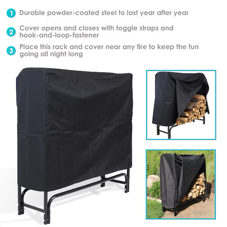 SPACIOUS SIZE: 49 inches long x 13.5 inches wide x 48 inches tall weighs 16 pounds; Firewood cover measures 50 inches long x 22 inches wide x 38 inches tall