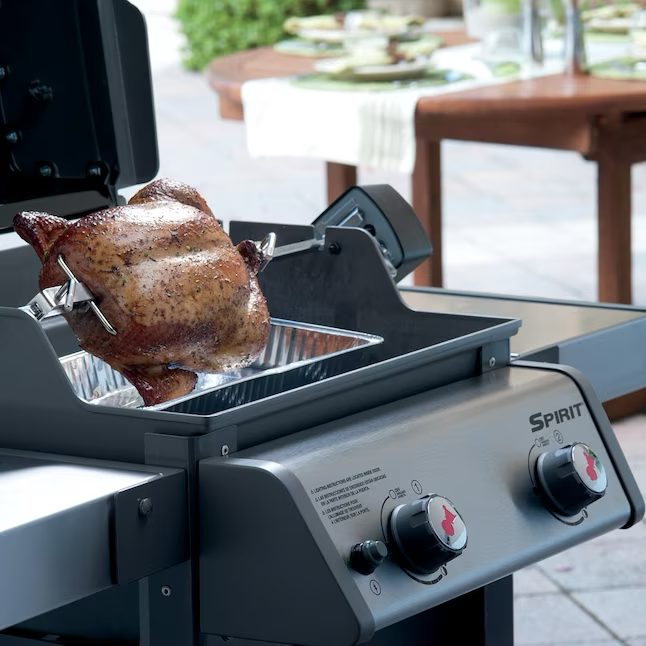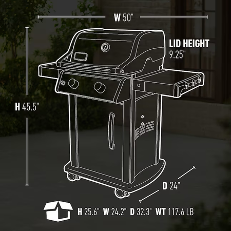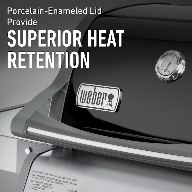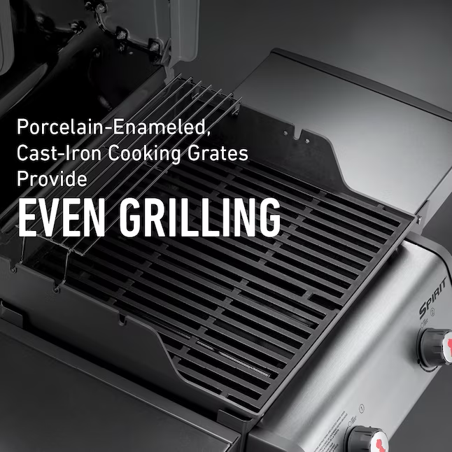 - Specifications Material del quemador Acero inoxidable Número de quemadores laterales 0 Material de la superficie de cocción Hierro fundido revestido de porcelana Área de cocción primaria (pulgadas cuadradas) 360 Tipo de combustible propano líquido Tanque de propano incluido No Plancha incluida No Bandeja de tanque extraíble No Tipo de encendido Electrónico Quemador de asador No Quemador infrarrojo No BTU de quemador de asador 0 Luces integradas No Quemador para dorar Ninguno Caja de ahumador integrada No BTU del quemador para dorar 0 Material de la tapa Acero revestido de porcelana BTU de quemador lateral 0 Estante lateral Plegable BTU de quemadores principales 26500 Indicador de temperatura Sí Kit de conversión de gas natural incluido No (no convertible) Área total de cocción (pulgadas cuadradas) 450 Gas Natural o Convertible a GN No Rejilla para calentar Sí Número de quemadores principales 2 Área de la rejilla calentadora (pulgadas cuadradas) 90