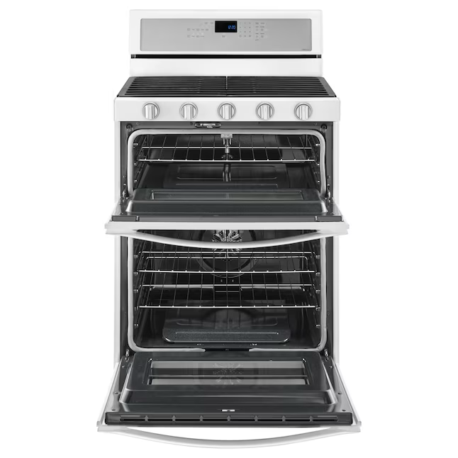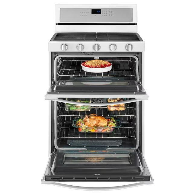 Whirlpool Horno de convección autolimpiante de 30 pulgadas, 5 quemadores, 3,9 pies cúbicos/2,1 pies cúbicos, estufa a gas independiente con horno doble de gas natural (hielo blanco)